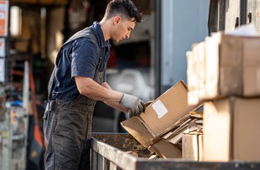 Odpady kartonowe z części samochodowych i opakowań szybko się gromadzą. Belownice Mil-tek utrzymują porządek i wydajność w warsztacie, zgniatając karton bezpośrednio u źródła.